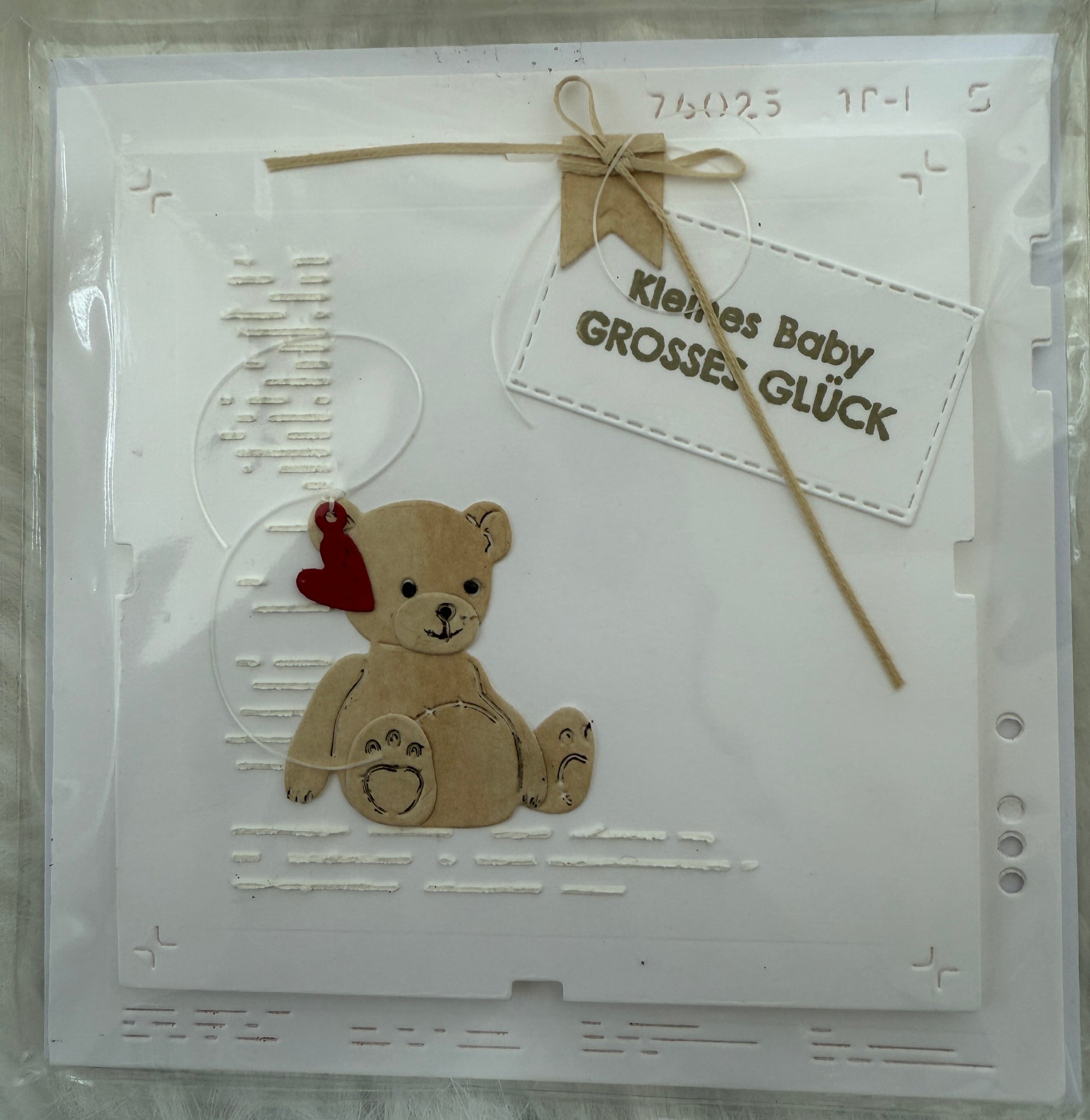 quadratische handgemachte Glückwunschkarte (Billet) zur Geburt