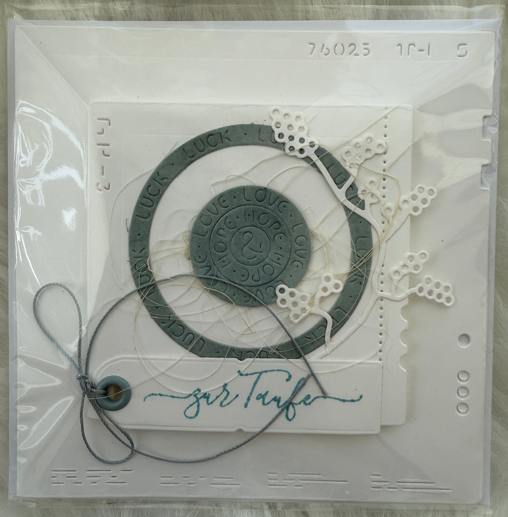 quadratische handgemachte Glückwunschkarte (Billet) zur Taufe